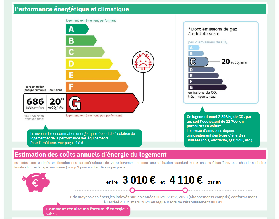 Consommations énergétiques - G - 686 kWhEP/m²/an.